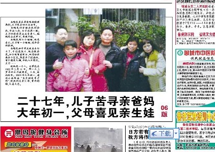 四川新闻网 (网易、中新网等) 花甲夫妻寻子27年 借奥运会发寻人启示骨肉团圆