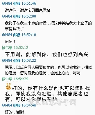 回到宝贝回家工作组,鼠尔草将情况在群上大致进行介绍,富有寻亲经验的八方客、逍遥、孝感阳光、云谷等提醒鼠尔草,要了解生母的态度,以免给娜娜造成第二次伤害。鼠尔草请求由有经验的孝感阳光与姨妈联系了解情况。
