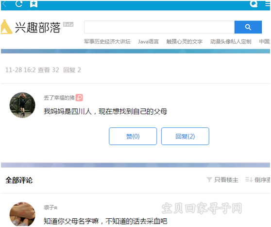 2017年11月28日,宝贝回家志愿者旋转的回忆在浏览QQ兴趣部落的时候看了下面这则寻亲求助: