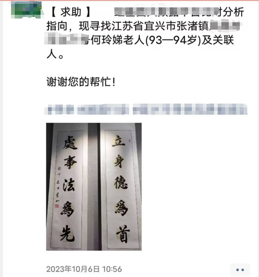 因为没有线索,寻找陈荣珍的信息一直处于搁置状态,到2023年10月6日,一条突然出现的朋友圈信息引起了宏鹰的注意: