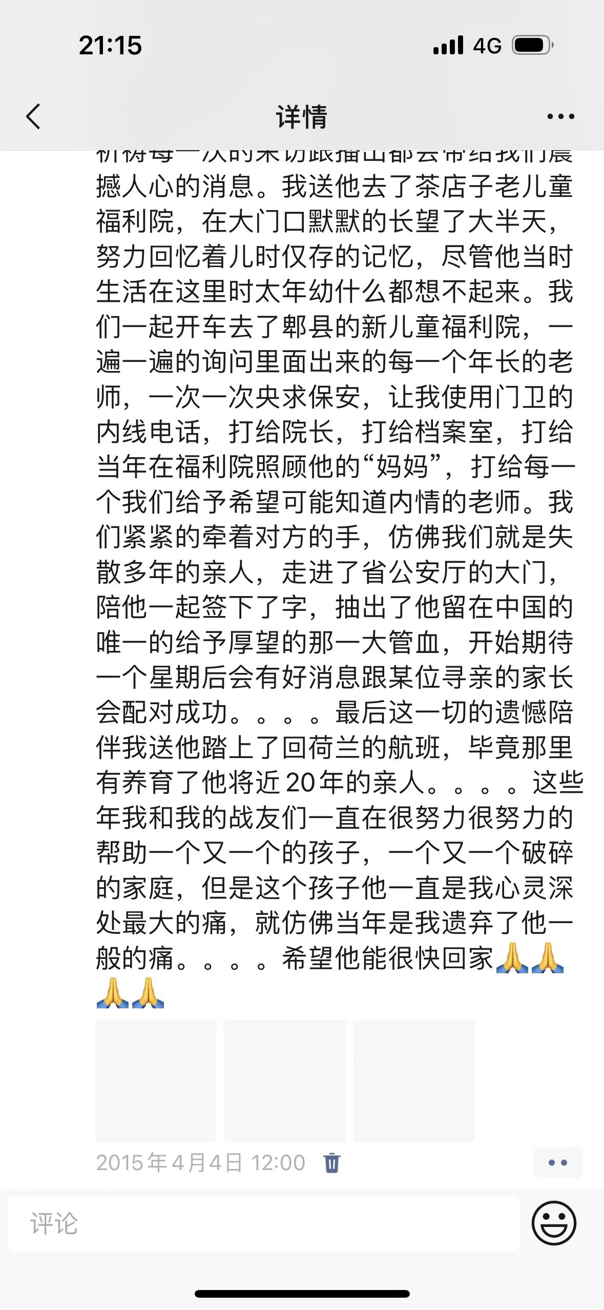 可是此时的福利院已搬迁,原来的地方也完全变样了。苟永明一家带着无限的遗憾回到了荷兰。从此,苟永明下定了一个决心:我一定要找到亲人!找到自己的根!
