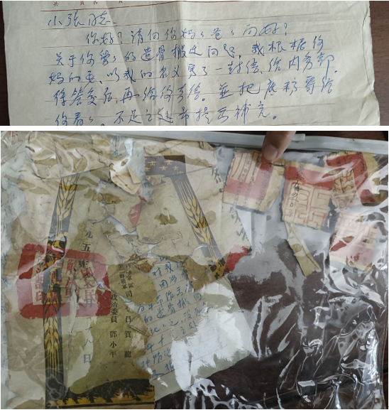 (信件截取部分文字,牺牲证明因年代久远,且遭遇动乱年代,已残破不堪,但烈士家人依然视若珍宝,精心呵护着这些“碎片”)