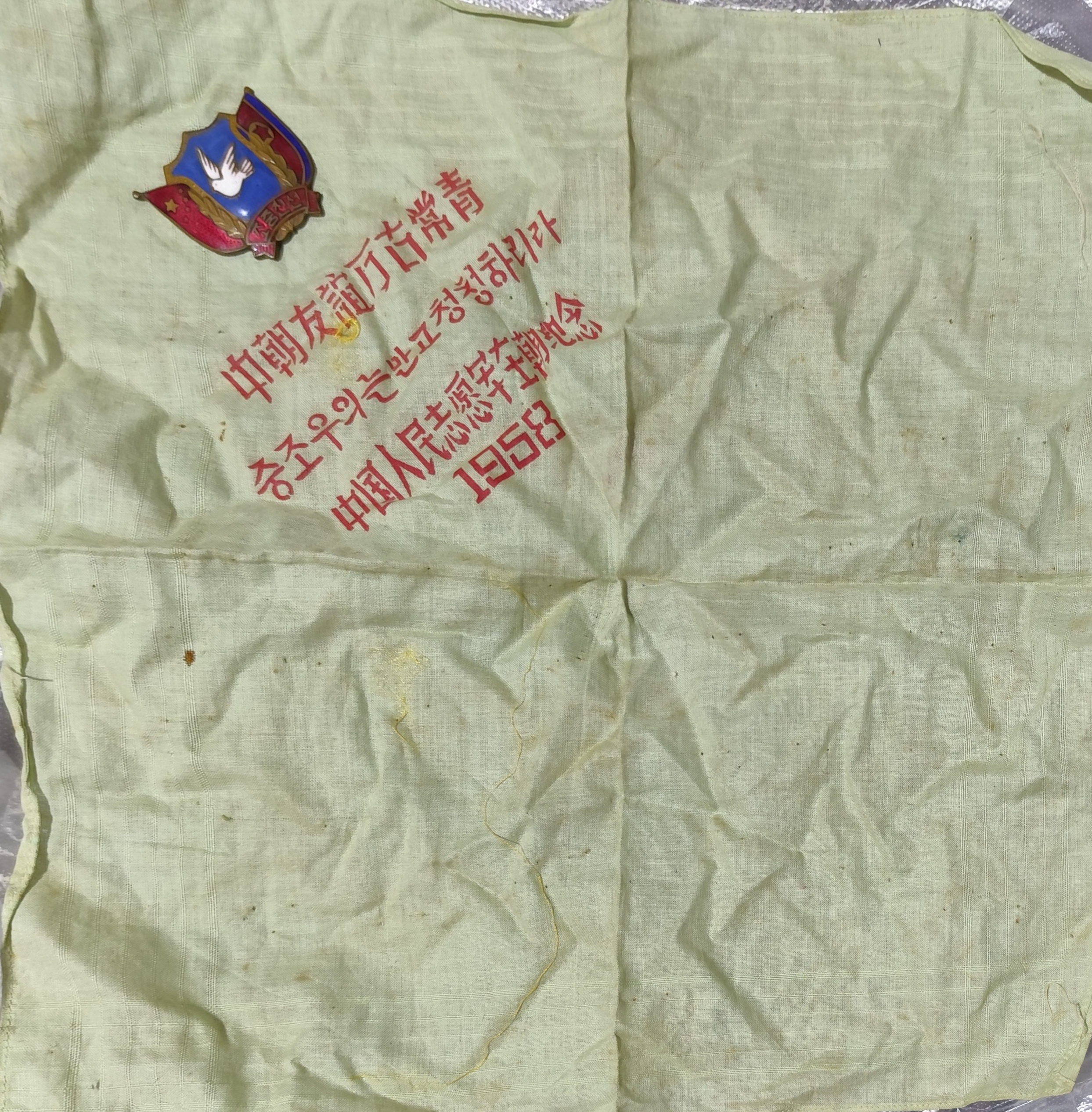 烈士侄女随后发来了家中珍藏的物品,包括烈士照片、烈士牺牲证明书、烈士参加抗美援朝获得的奖章和遗物。此外,还有1952年2月16日烈士参军时佩戴大红花与姐姐一家的合影。