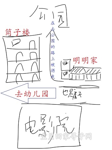 明明约5岁被拐,记得家是城市里,有父母,有个不会走路的弟弟。家对面有一栋五层楼的筒子楼,邻近有个电影院。步行十分钟左右有个很大的公园,自己曾掉进过公园的湖里。