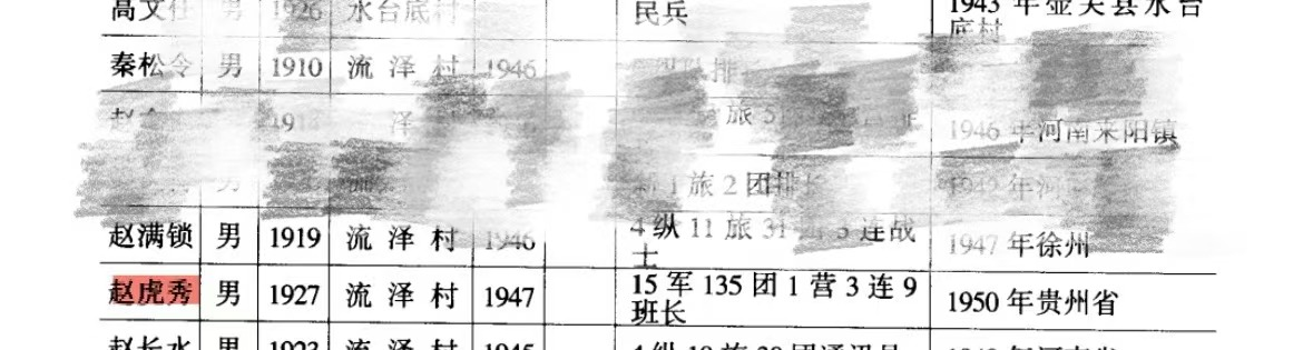 6月24日,贵州省退役军人事务厅联合“多彩贵网”发布了第二批为烈士寻亲的名单,赵虎秀烈士为其中的一位。资料显示赵虎秀烈士山西壶关县,1930年出生,1949年参加革命,1950年3月在珠藏区对匪作战牺牲,任45军135团班长。