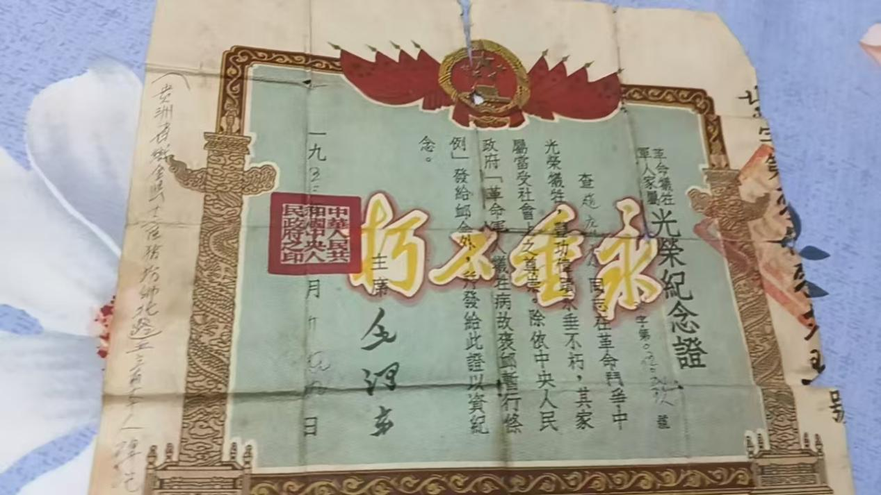 据赵德泽所述,烈士兄弟三人,赵虎秀排行老二,家里曾经挂过军属牌,也收到了烈士证,因此,家里知道二爷爷牺牲在了贵州,可是到底安葬哪座陵园,他们一直未曾知晓。随后今生将墓碑照片发给赵德泽,告知烈士目前安葬于织金县珠藏烈士陵园。
