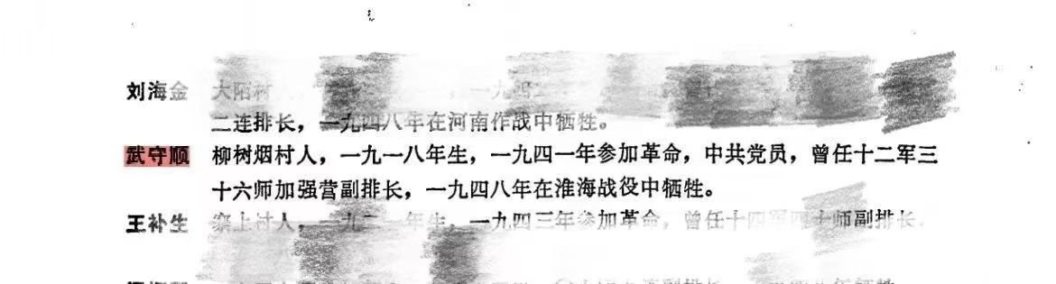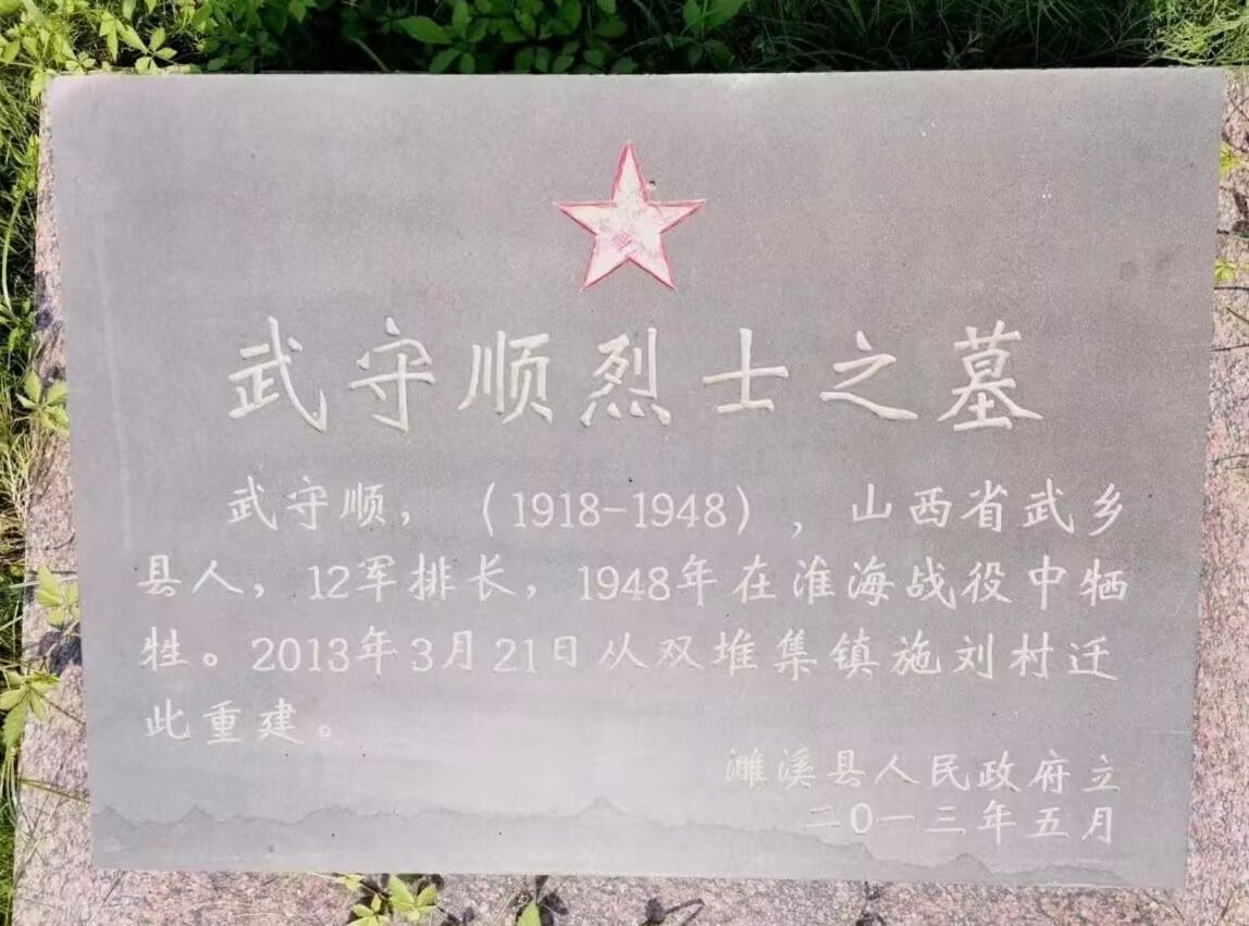 武守顺烈士陵园加载1918年出生,山西省武乡县人,1948年在淮海战役中牺牲。今生查了武乡县县志,县志记载烈士山西省武乡县洪水镇柳烟村,县志记载和陵园信息一致。