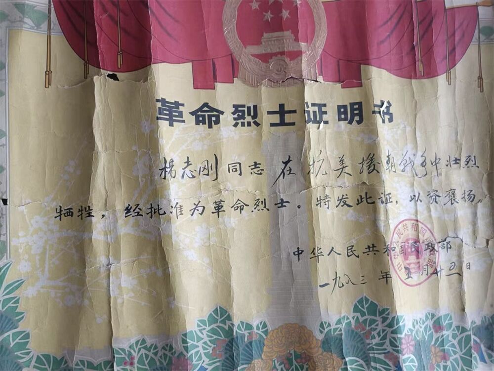 频频和烙铁沟通,请烙铁继续在网络扩散寻找杨志刚烈士后人的短视频。令人欣慰的是,这一次的扩散取得成效,过了两天就有人和烙铁联系,发来了烈士侄子的联系方式!烙铁将信息反馈给了频频。频频和烈士侄子互加了微信,通过沟通核实,确定了他和杨志刚烈士的亲属关系。烈士侄子也提供了家中珍藏多年的杨志刚烈士的烈士证照片。至此,为杨志刚烈士寻根任务圆满完成。
