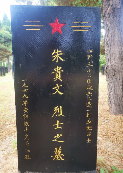 1949年4月,中国人民解放军四十二军一二四师三七零团炮兵连战士朱贵文在我军第四次解放安阳战役中壮烈牺牲,此次战役,我军伤亡达2600余人。因战争年代信息缺失,朱贵文与其他烈士一同被湮没于历史尘埃,仅留下一座墓碑伫立于河南安阳县烈士陵园。