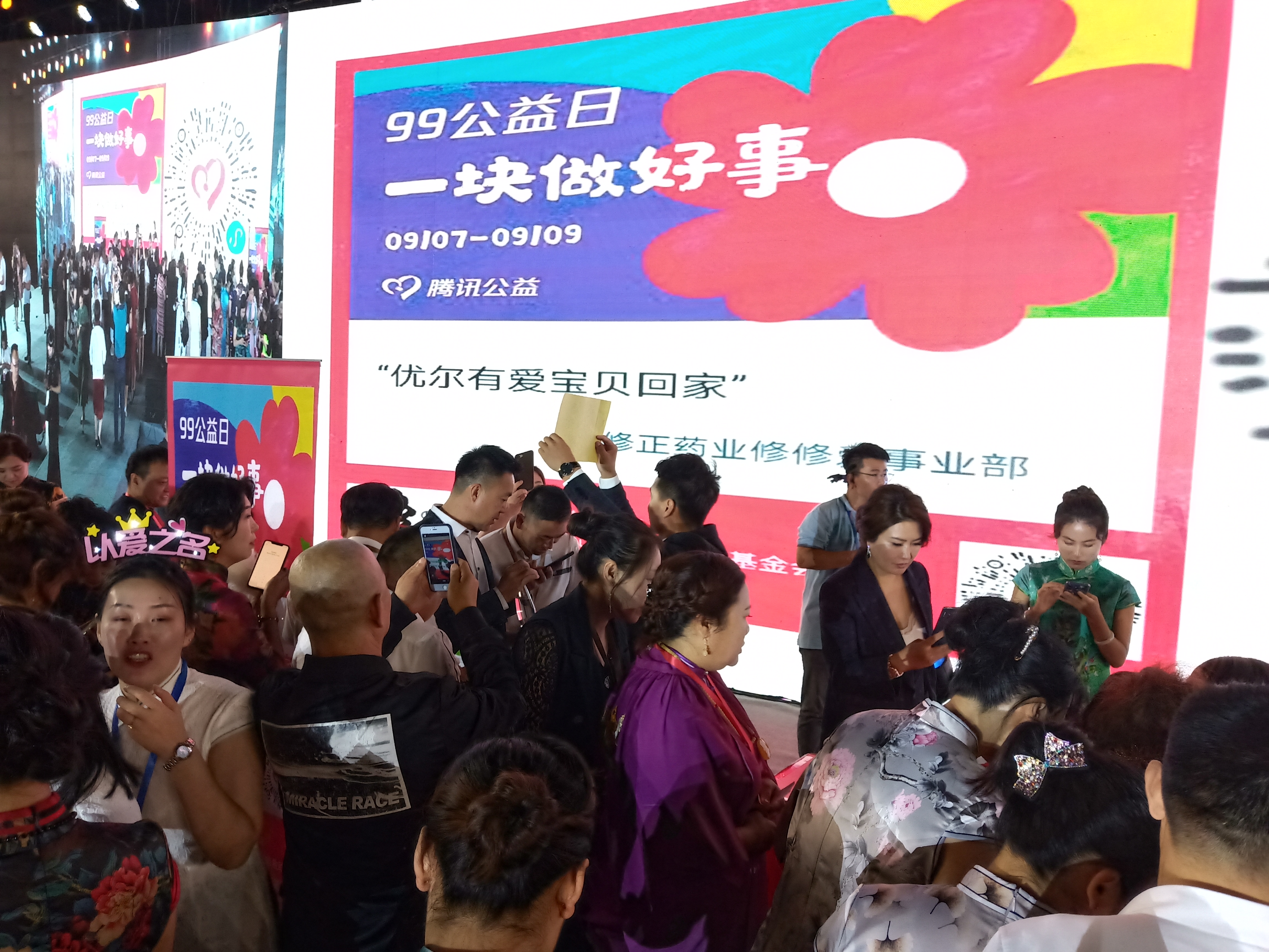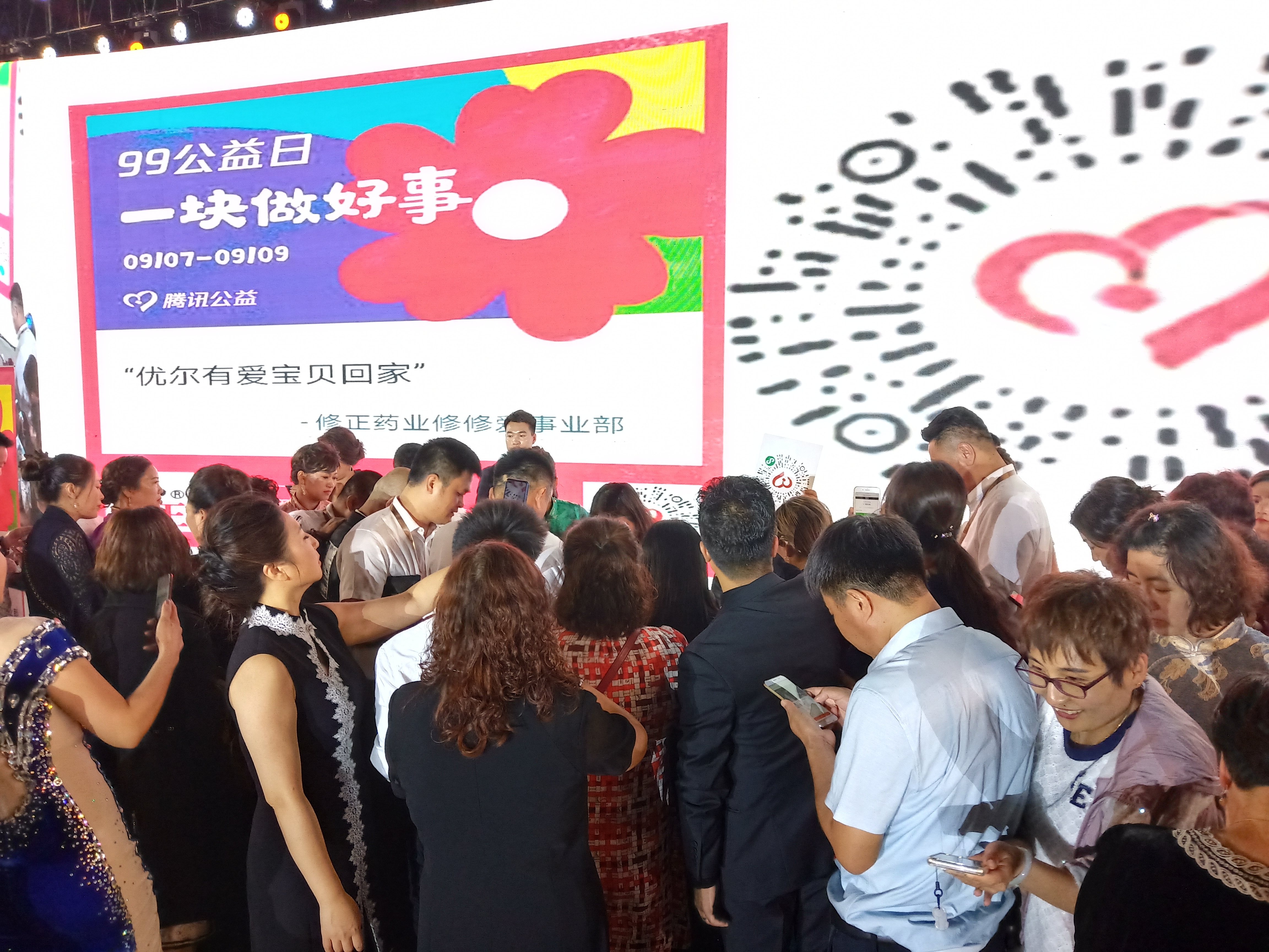 伴随着歌手付笛声、任静一首爱意满满的歌曲——《你是幸福的我是快乐的》,刘学梅总经理发出了募捐倡议。在她的感召下,在场的修修爱员工以及经销商们纷纷走上台,为宝贝回家献上自己的一份爱心,为每个失子家庭添上一抹爱的温情。现场共募集善款九万余元。