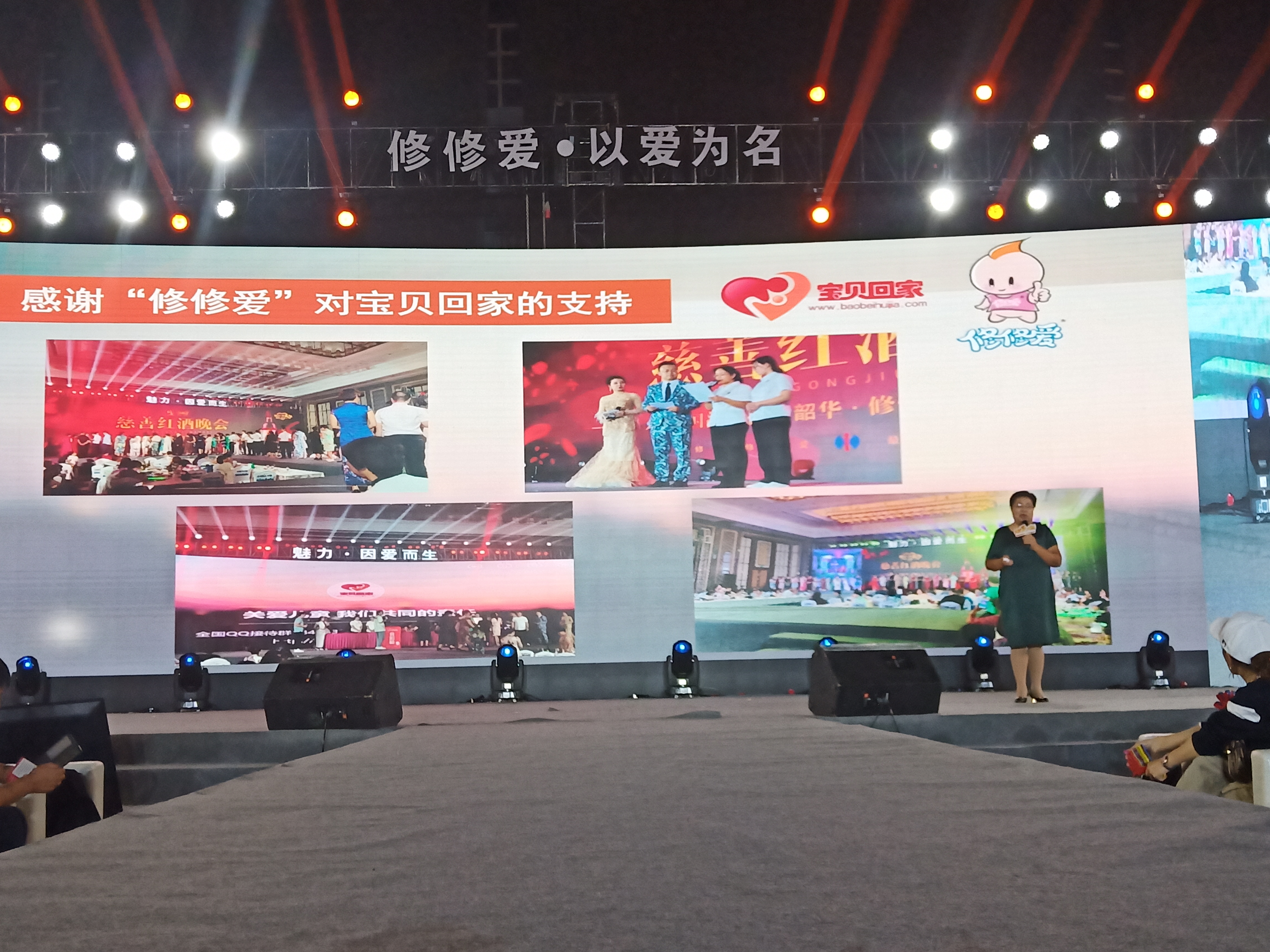 慈善晚会上,张宝艳向修修爱事业部营销总监刘学梅表示衷心感谢。因为疫情原因,2020年也让修修爱压力倍增,与其他企业一样,他们也面临着销售不景气的现状。但就是在这样的大环境下,刘学梅总经理依然初心不改,坚持帮助宝贝回家,一如既往的与宝贝回家站在一起。张宝艳表示,正因为有了修修爱这样的企业,才让宝贝回家有了更大的信心,去帮助更多的孩子,去促成更多的家庭团圆!